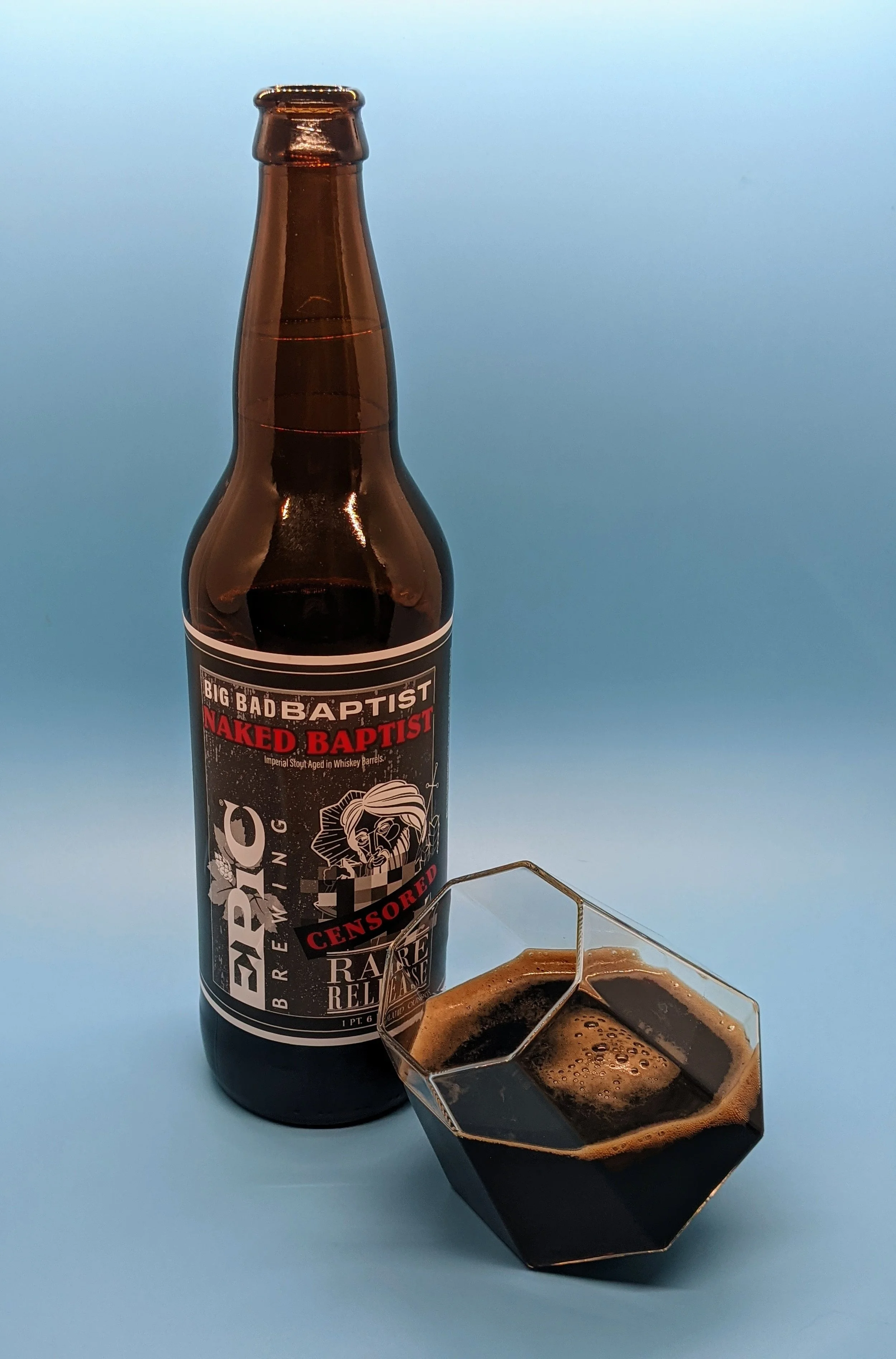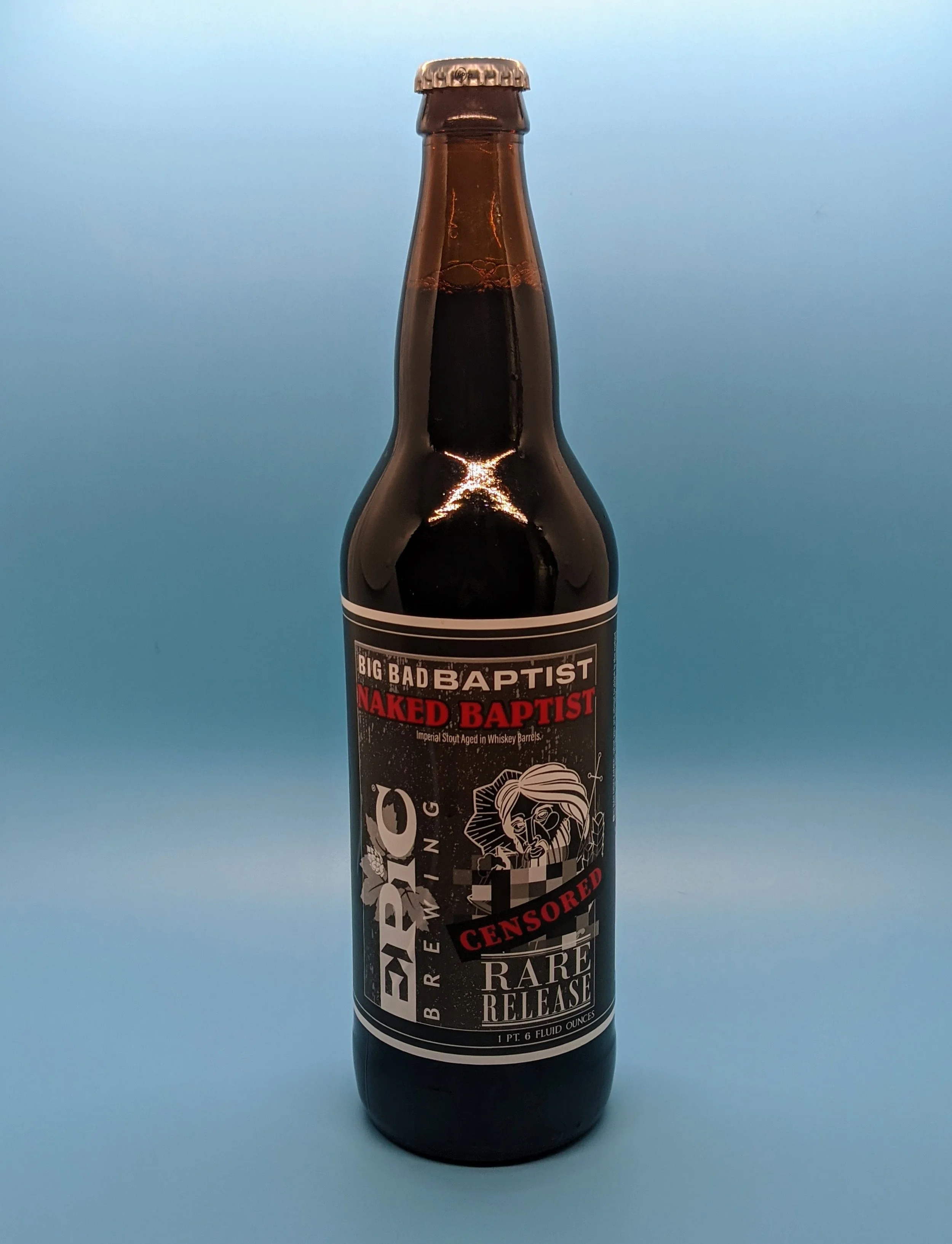 Epic Brewing's Big Bad Baptist Naked Baptist Imperial Stout aged in whiskey barrels is a bold and flavorful beer with notes of dark chocolate, roasted coffee, and vanilla. The whiskey barrel aging gives the beer a warming alcohol finish and a depth of flavor that is perfect for sipping on a cold night. The Naked Baptist version of this beer is unique in that it is not aged with any added flavors or coffee, allowing the natural flavors of the beer to shine through.